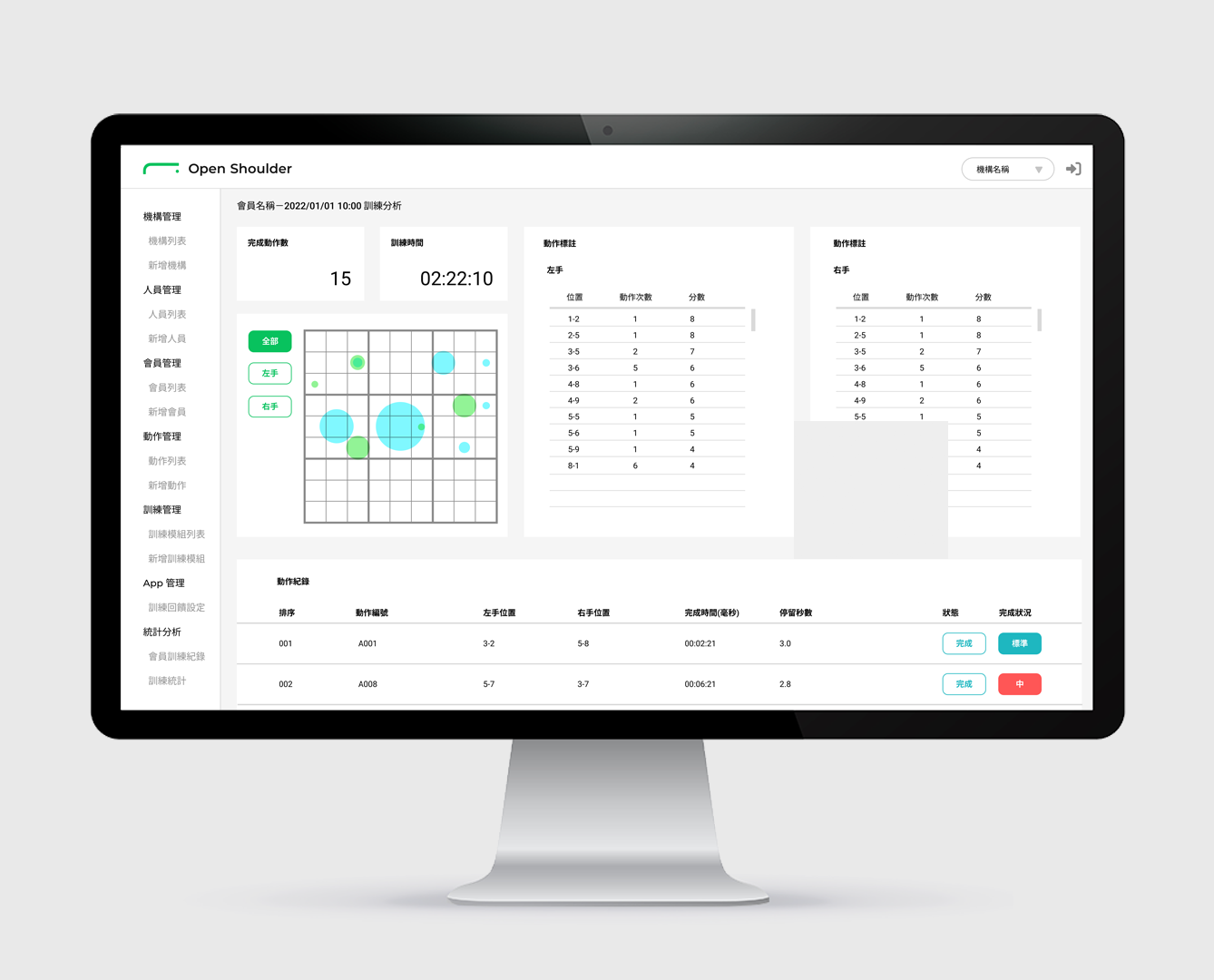 OPEN SHOULDER features a cloud-based backend platform that records detailed training data for each user. Healthcare professionals can monitor progress, analyze performance, and adjust exercise plans accordingly — delivering safer, smarter, and more personalized rehabilitation guidance.
