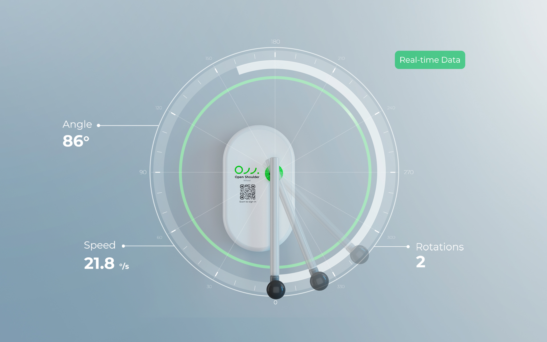 Records the shoulder’s joint angle in real time during rotation. This helps evaluate the user’s range of motion and whether the shoulder is progressing toward improved flexibility or still experiencing movement limitations.