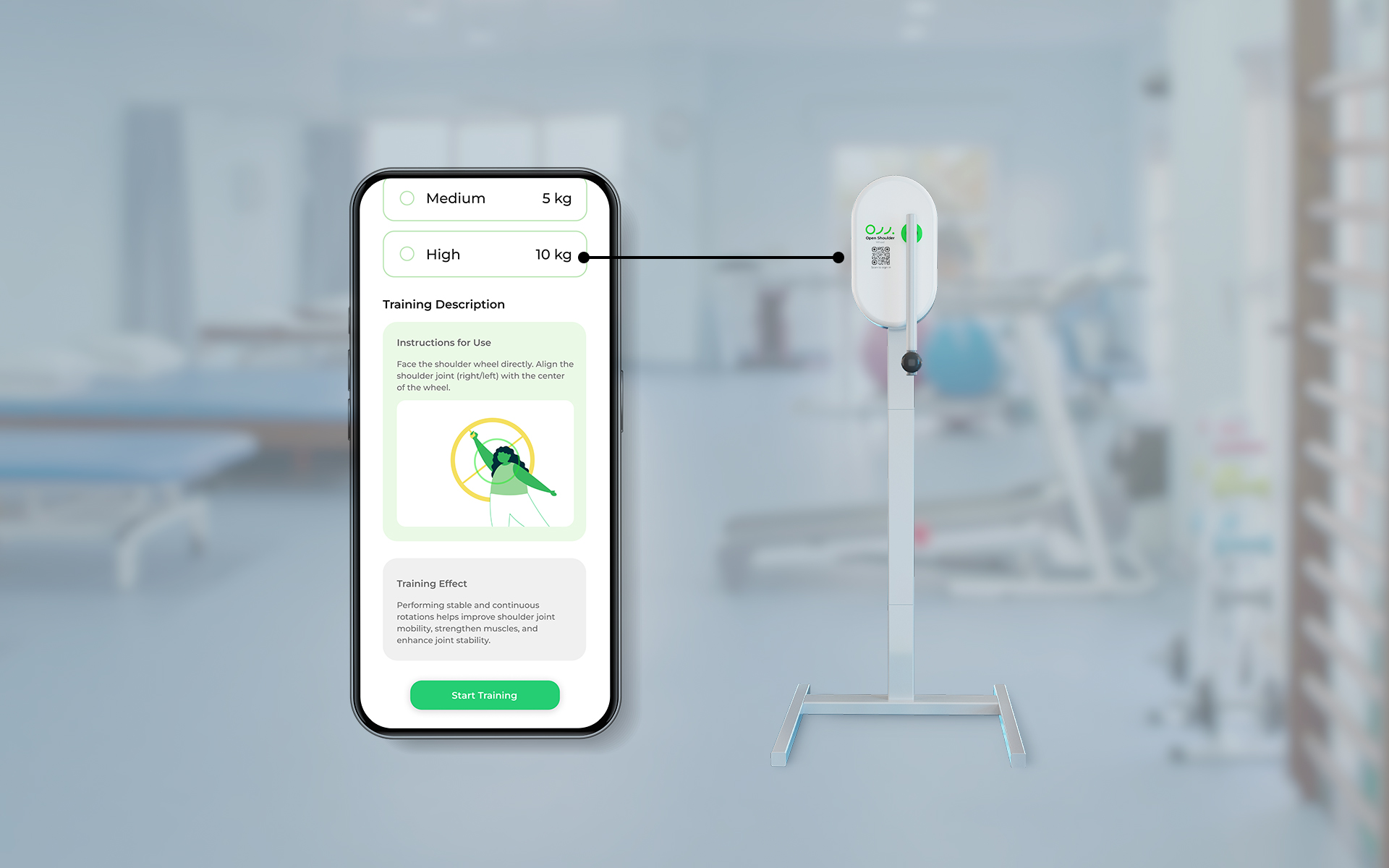 The Open Shoulder Wheel is an app-connected, smart rehabilitation device designed for safe and effective shoulder mobility training. Featuring adjustable magnetic resistance (0–10kg), ergonomic structure, and real-time motion tracking, it supports personalized exercise programs and posture correction. Ideal for clinical use and home rehabilitation.